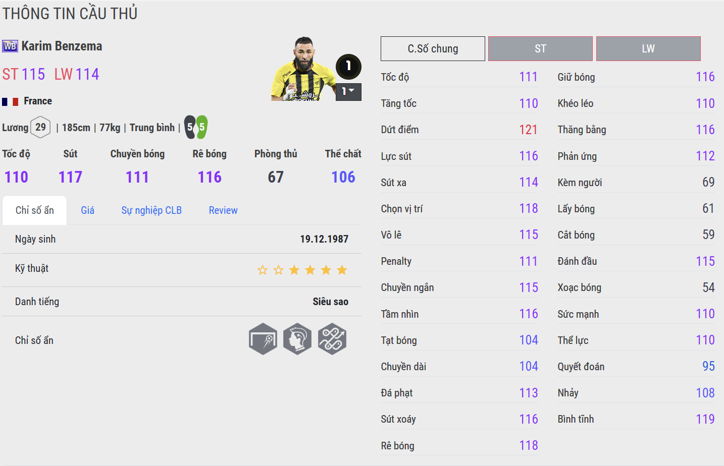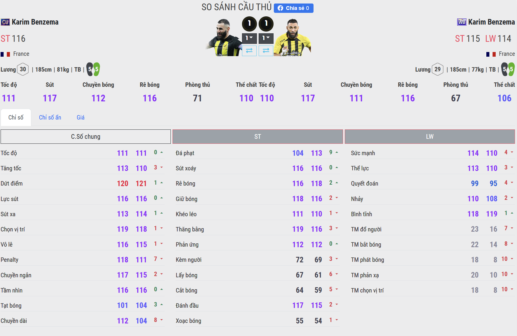 CU nhỉnh hơn nhẹ ở khả năng tăng tốc. Benzema CU có khả năng tăng tốc nhanh hơn trong quãng ngắn, đặc biệt phù hợp với các tình huống phá bẫy việt vị hoặc tấn công trực diện. WB không thua nhiều, nhưng cảm giác chạy có phần nặng nề hơn một chút, phù hợp với lối chơi kiểm soát, phối hợp.