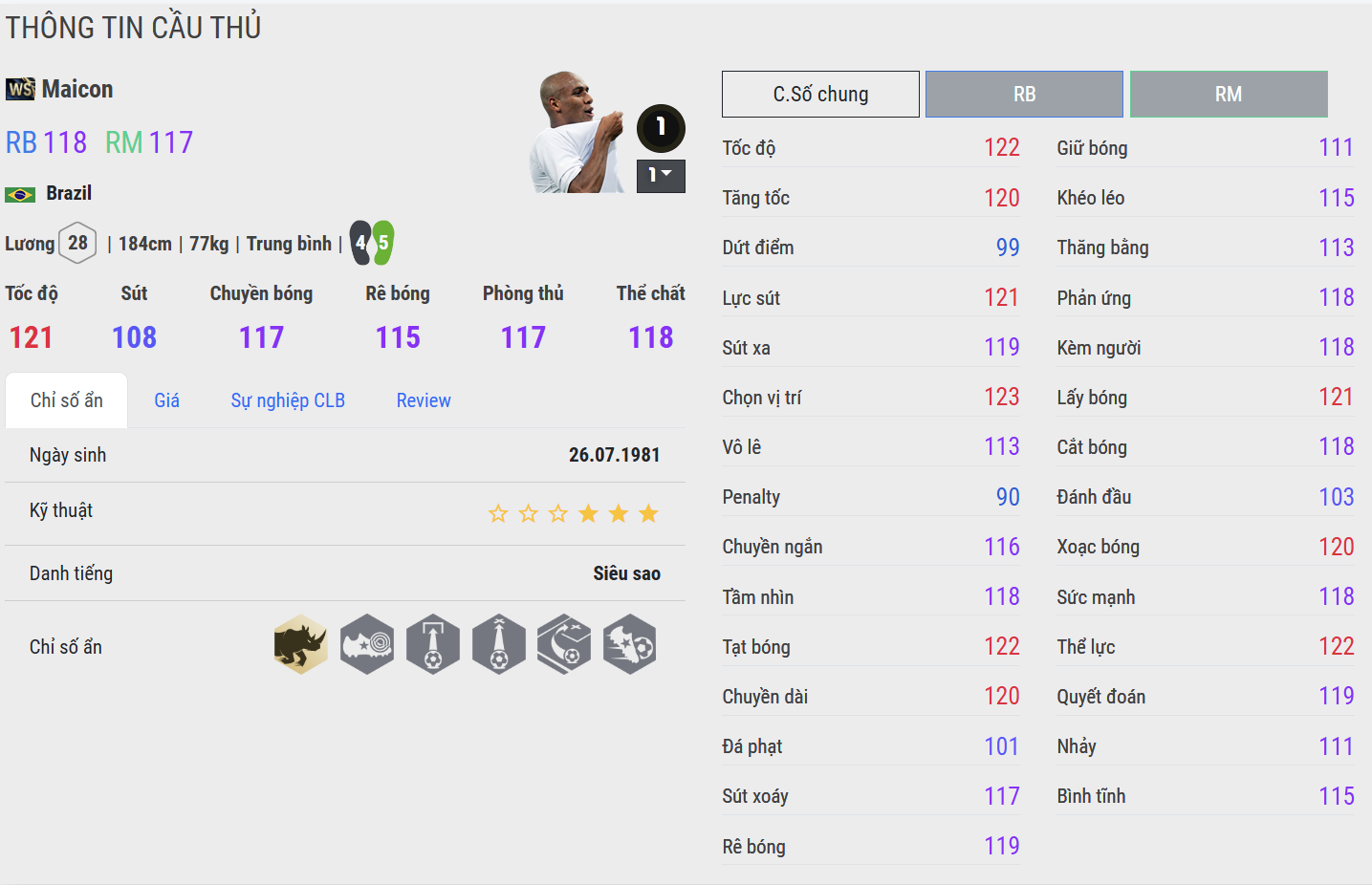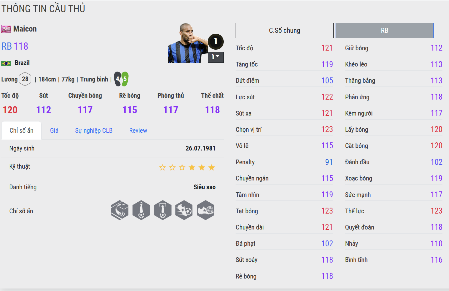 Maicon WS đã rất đầm người, tranh chấp tay đôi chắc chắn, ít bị hất văng khi va chạm với winger tốc độ. Tuy nhiên, trong những pha đè vai trực diện, WS vẫn có lúc bị hụt lực.