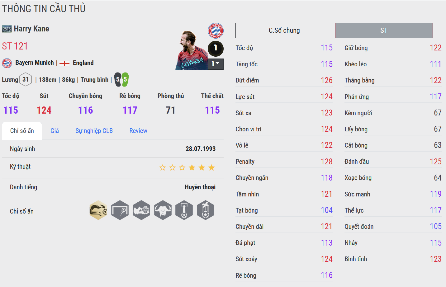 Harry Kane là biểu tượng của mẫu tiền đạo hiện đại: toàn diện, thông minh và hiệu quả đến mức lạnh lùng. Không sở hữu tốc độ quá vượt trội, nhưng Kane bù lại bằng khả năng chọn vị trí tinh tế, dứt điểm đa dạng và sự điềm tĩnh tuyệt đối trong mọi tình huống trước khung thành.