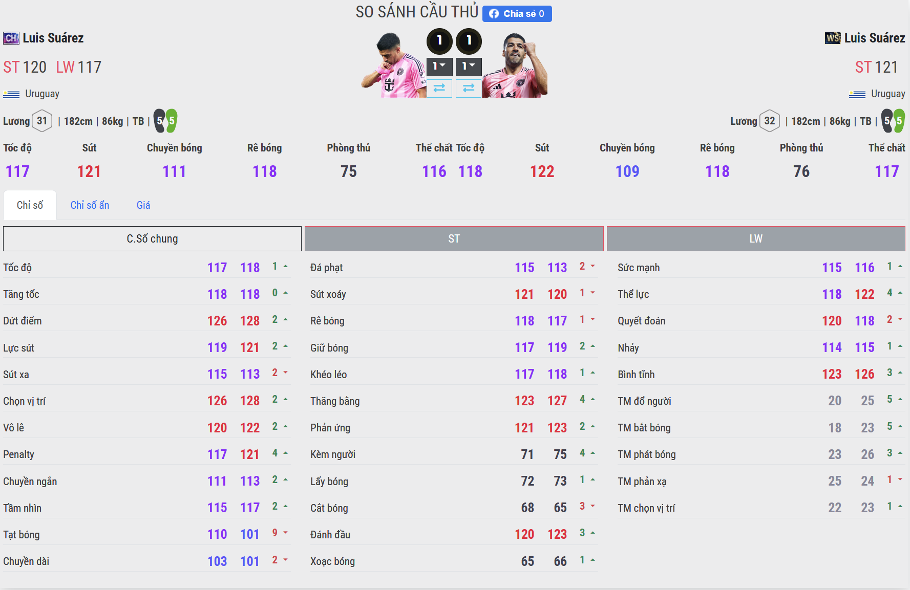 Dù không phải mẫu tiền đạo thuần tốc độ, nhưng mùa WS của Suárez mang đến cảm giác di chuyển nhanh và linh hoạt hơn rõ rệt so với CH. Anh vào nhịp bứt tốc sớm hơn, phản ứng nhanh với các pha chọc khe, giúp tận dụng cơ hội hiệu quả trong những pha phản công. Mùa CH lại có xu hướng chậm nhịp hơn đôi chút, di chuyển thiên về chọn vị trí và dứt điểm một chạm. Nếu bạn cần một Suárez năng động, có khả năng di chuyển thông minh và tạo đột biến, WS là lựa chọn ổn hơn