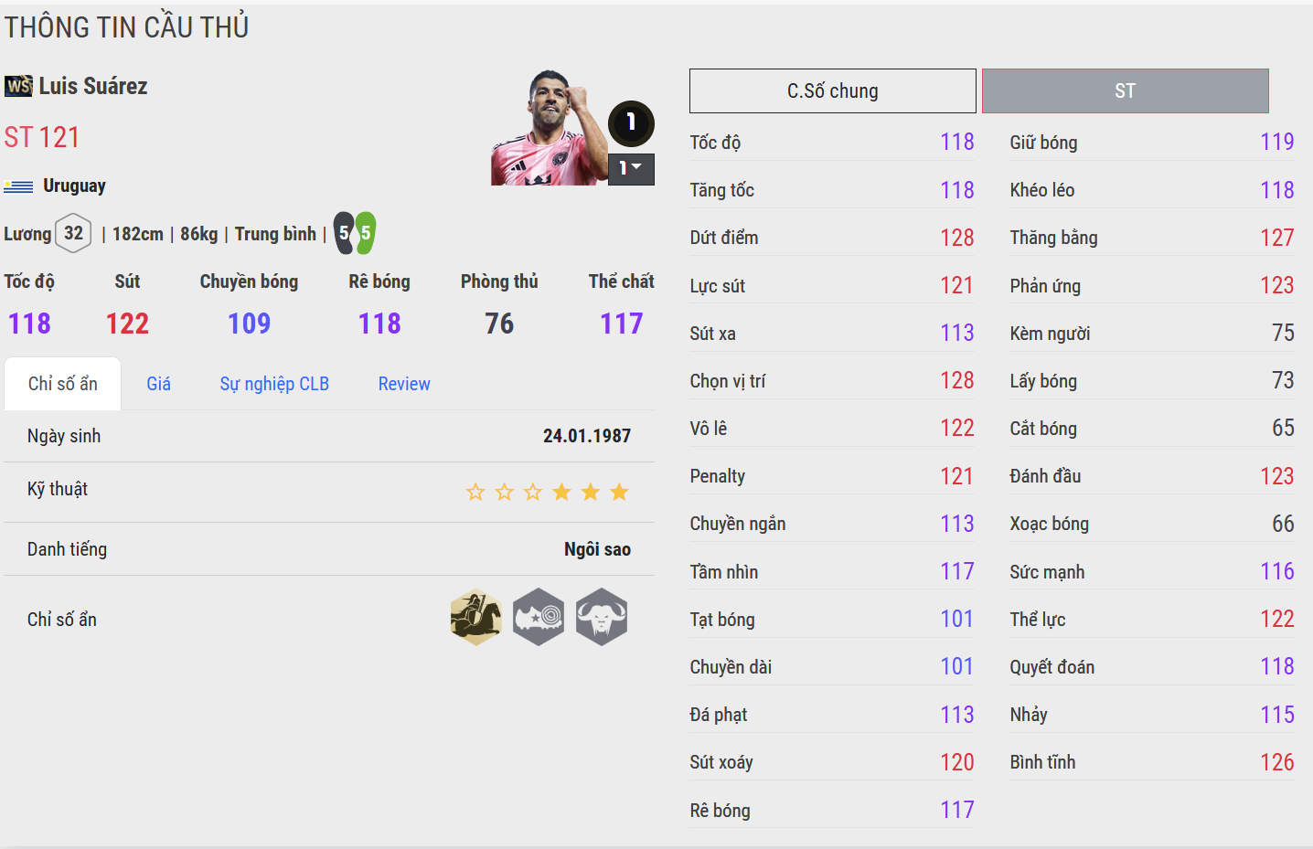 Trong FC Online, Suárez là lựa chọn hoàn hảo cho những HLV muốn có một trung phong vừa hiệu quả, lì lợm, lại sở hữu tinh thần không bỏ cuộc, sẵn sàng tỏa sáng trong mọi khoảnh khắc quyết định của trận đấu.