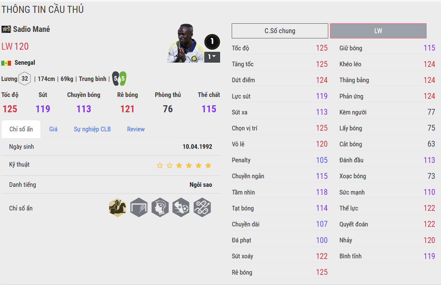 Sadio Mané mùa WS thể hiện rõ nét sự bùng nổ vốn gắn liền với thời kỳ đỉnh cao của anh ở Liverpool. Những pha tăng tốc ngắn của WS rất bén, bước đầu mạnh và khả năng vượt người vô cùng ấn tượng. Khi đẩy bóng dài hoặc băng vào khoảng trống, WS cho cảm giác “xé gió”, tạo ra khoảng cách nhanh chóng với hậu vệ. Ngược lại, mùa CH lại mang phong thái ổn định và mượt mà hơn. Tốc độ của CH không bộc phát mạnh như WS, nhưng lại duy trì rất đều trên quãng chạy dài, kiểm soát bóng tốt và ít bị lỗi chạm khi chạy tốc độ cao. WS là sự bùng nổ thuần túy, trong khi CH thiên về sự liền lạc và cân bằng trong từng nhịp chuyển động.