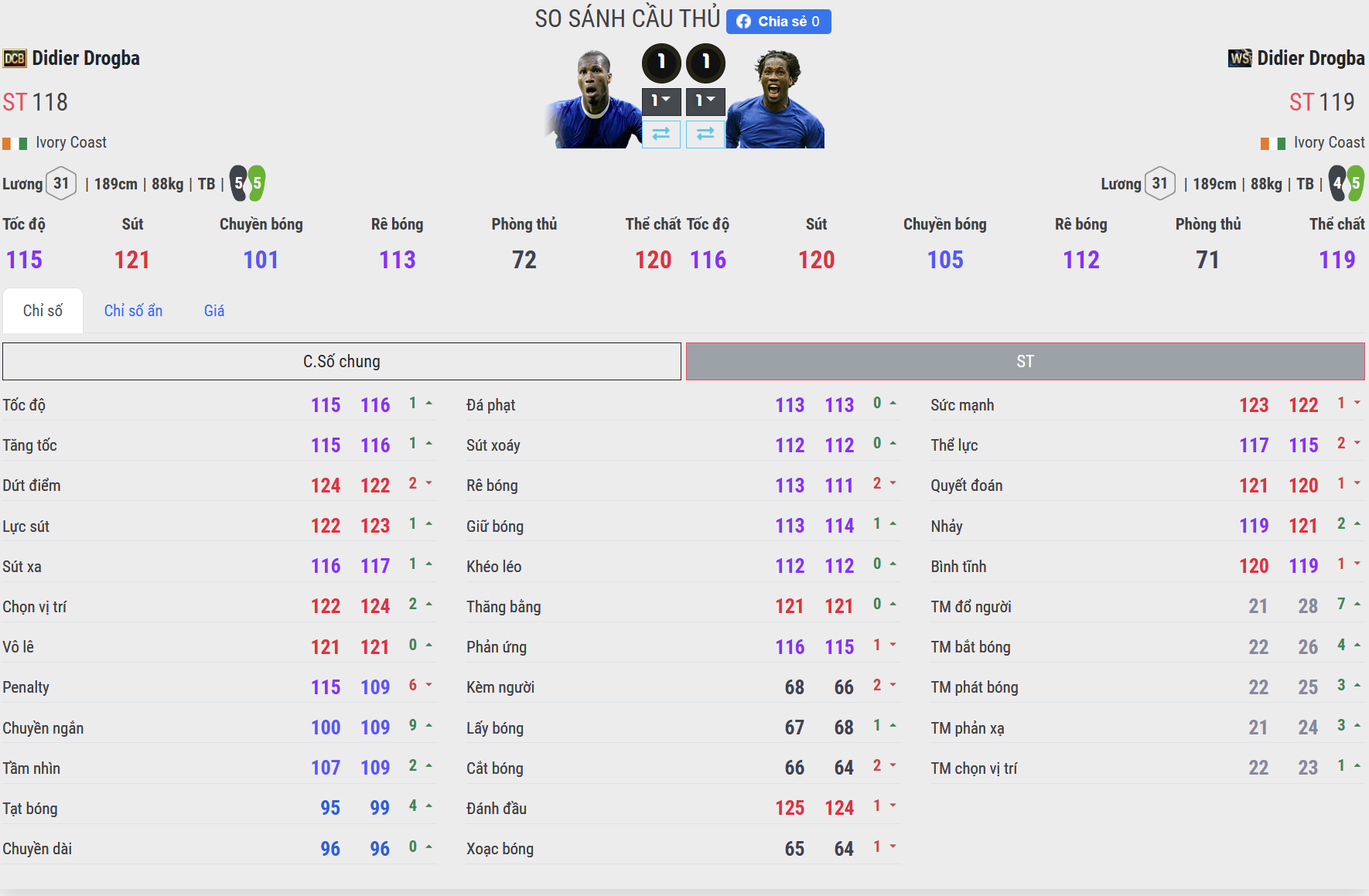 → Nhận xét: DCB áp đảo hoàn toàn, thuộc top tiền đạo tì đè mạnh nhất game ở mùa này.