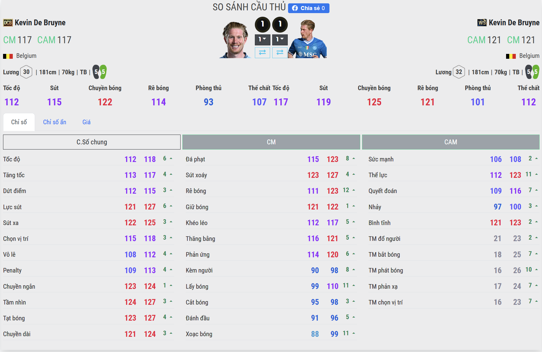 De Bruyne luôn có thể hình tốt, và mùa WS tiếp tục phát huy thế mạnh này. Khả năng tì đè, giữ bóng khi bị truy cản và tranh chấp tay đôi đều được cải thiện đáng kể. Cảm giác “dẻo mà lì” giúp anh không dễ bị mất bóng trước các CDM hoặc CB cao to. Trong khi đó, DCB lại có xu hướng thiên về khéo léo hơn là sức mạnh, nên dễ bị đánh bật nếu va chạm trực diện. Ở những tình huống bóng 50-50, WS gần như luôn chiếm ưu thế nhờ sự cân bằng giữa thể lực và thăng bằng.