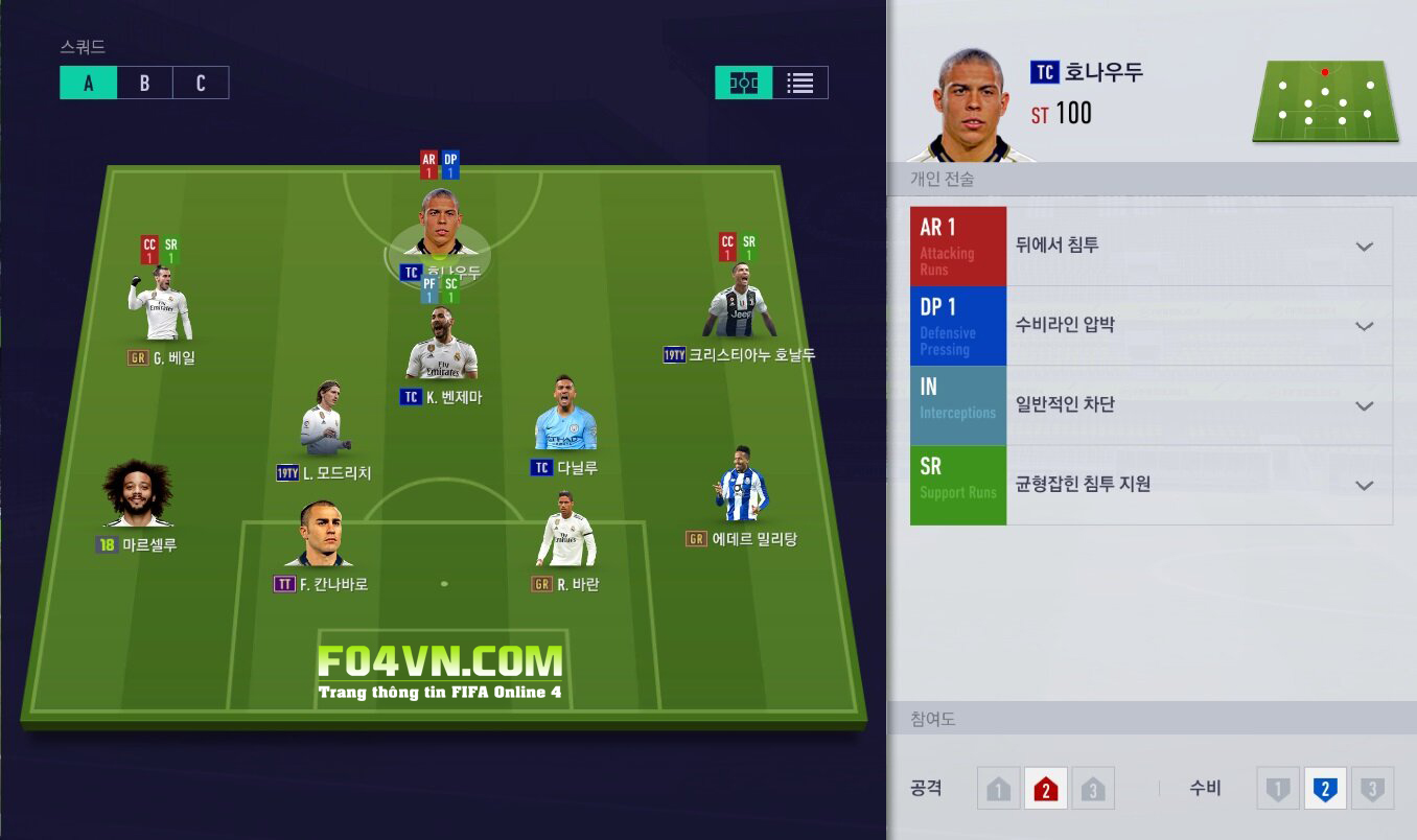 Với những cái tên có khả năng tấn công hàng đầu game với lối chơi di chuyển tốc độ. Thiết lập tốc độ cao trên mức trung bình sẽ đẩy mạnh khả năng di chuyển xâm nhập khi tấn công. Chuyền bóng 65 kéo rộng cự li của đội hình đặc biệt là 2 vị trí cánh sẽ được kéo rộng ra sát biên.