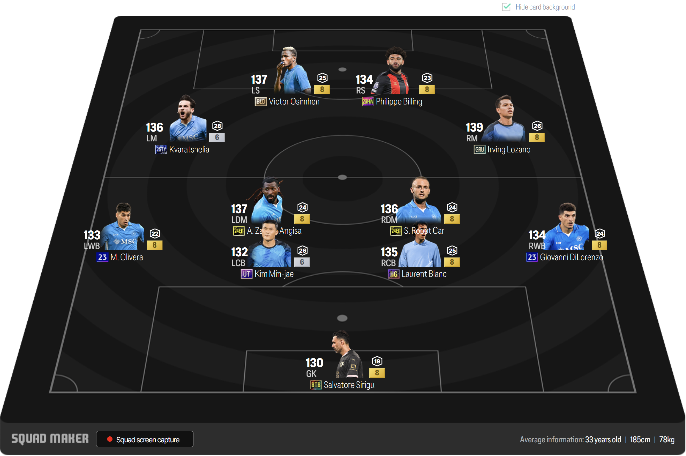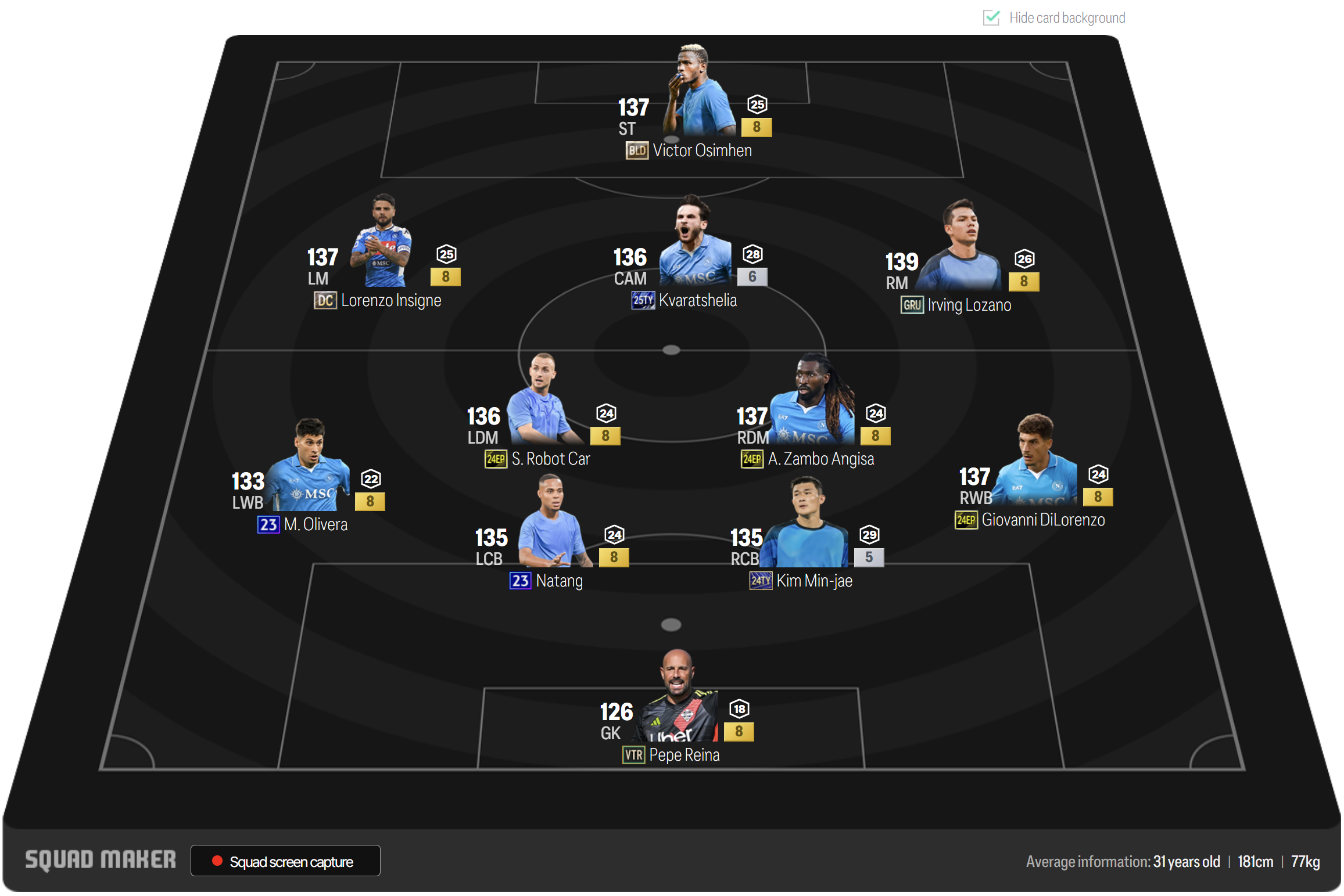 Napoli không phải một team color quá mạnh nhưng cũng được đánh giá là một team color có giá trị sử dụng cực kì tốt. Họ sở hữu nhiều cái tên chất lượng và với một chiến thuật hợp lý thì sơ đồ này có thể leo rank cực kì hiệu quả.