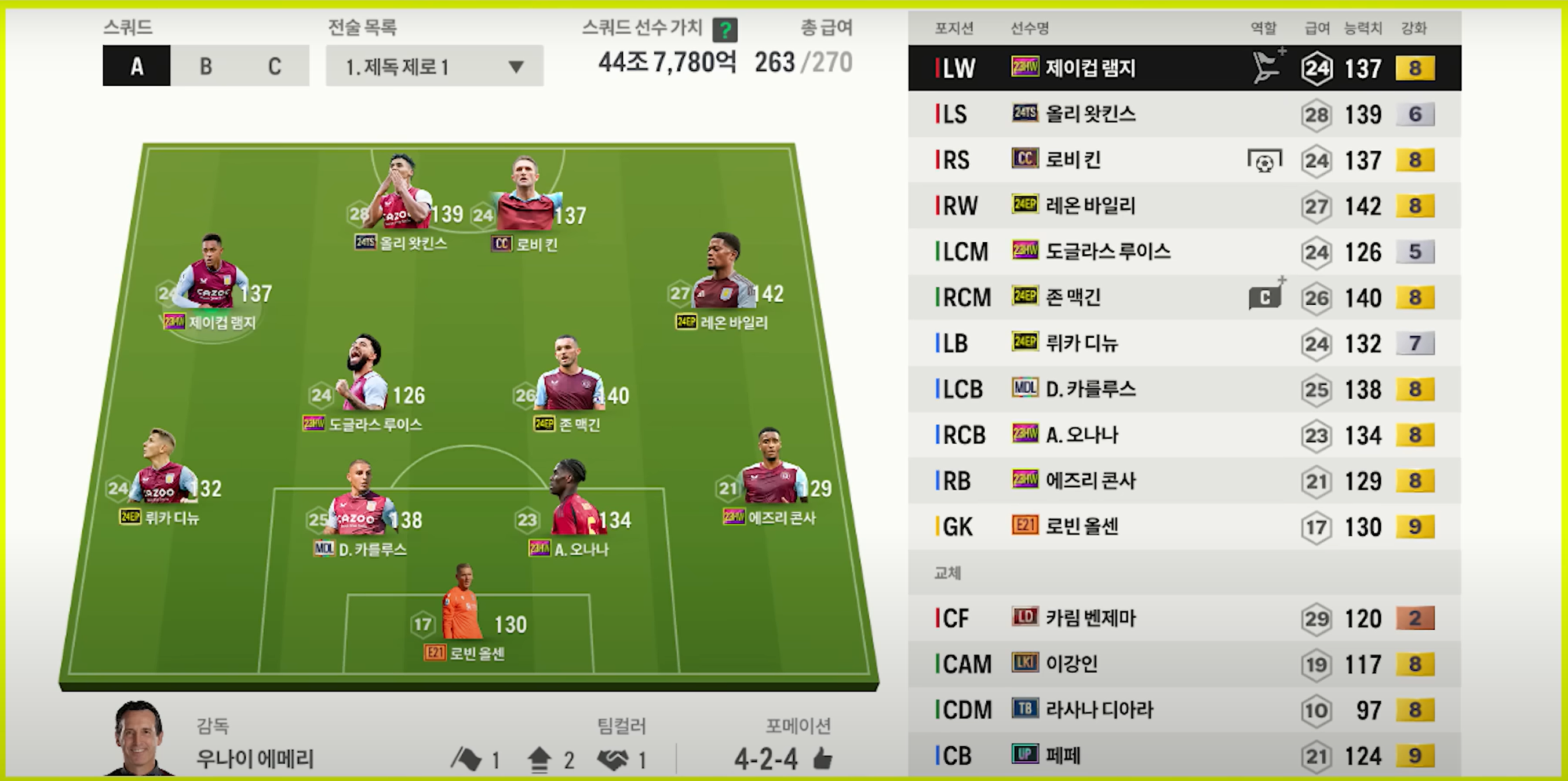 Trong FC Online, Aston Villa không phải một team color quá mạnh nhưng cũng có cho mình một đội hình khá đồng đề và đặc trưng cho từng vị trí trên sân. Sự kết hợp này khiến cho Aston Villa hoàn toàn có thể leo rank hiệu quả với những nhân lực và sơ đồ hợp lý.