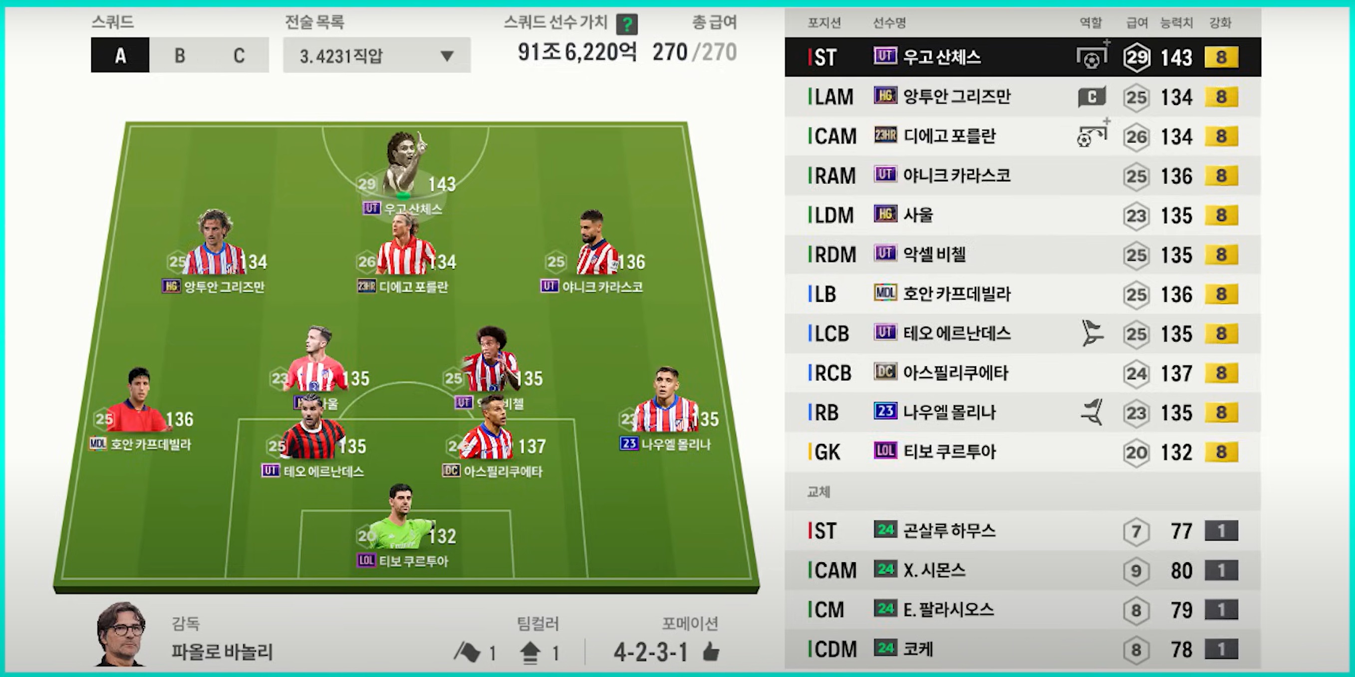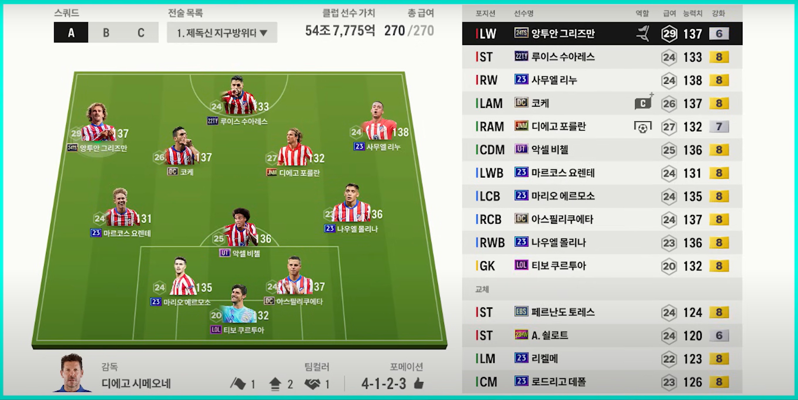 Team color Atletico Madrid không phải là một team color quá mạnh để leo rank nhưng cũng được đánh giá là một team color khá thú vị cho các HLV trải nghiệm với nhiều những cái tên chất lượng cho từng vị trí trên sân.