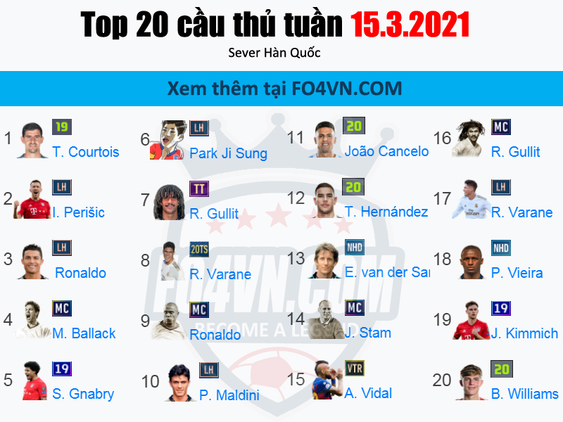 Chúng ta lại đến với bảng xếp hạng hàng tuần của các cầu thủ được ưa chuộng nhất trong ranking xếp hạng 1vs1 được Nexon cung cấp