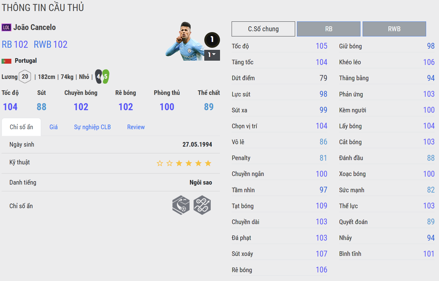 Vị trí hậu vệ biên luôn được xem là một trong những vị trí cân lương trong game khi các HLV sử dụng những cái tên mùa thấp +8 thay vì chơi những mùa mới lương cao. Trong đó, mùa LOL được đánh giá là một trong những mùa thẻ có chất lượng cầu thủ hậu vệ cánh chất lượng, được nhiều HLV sử dụng.