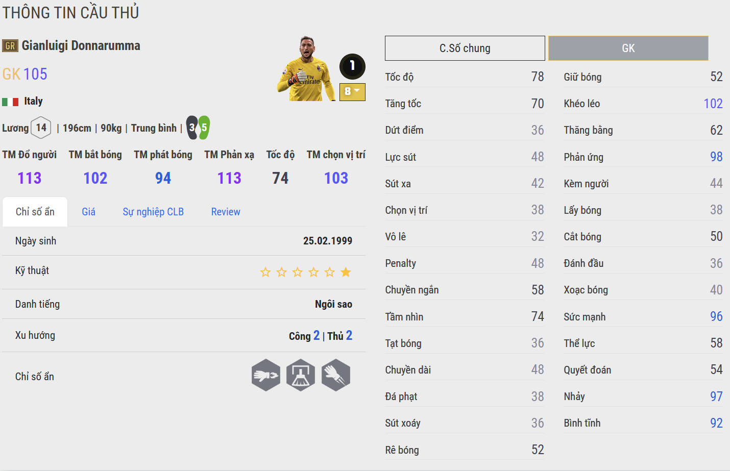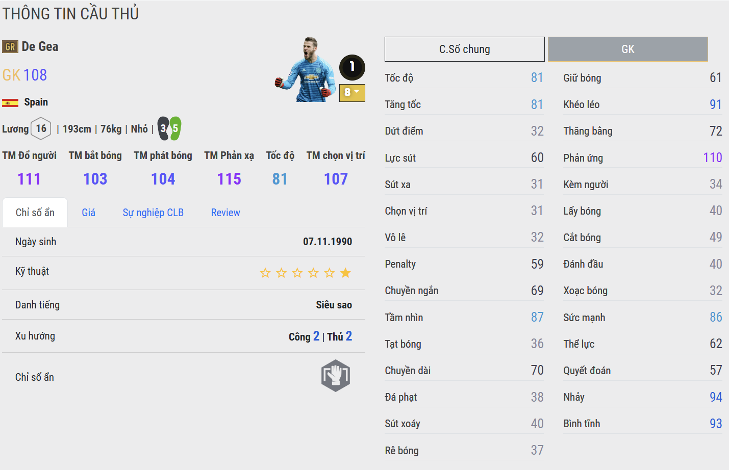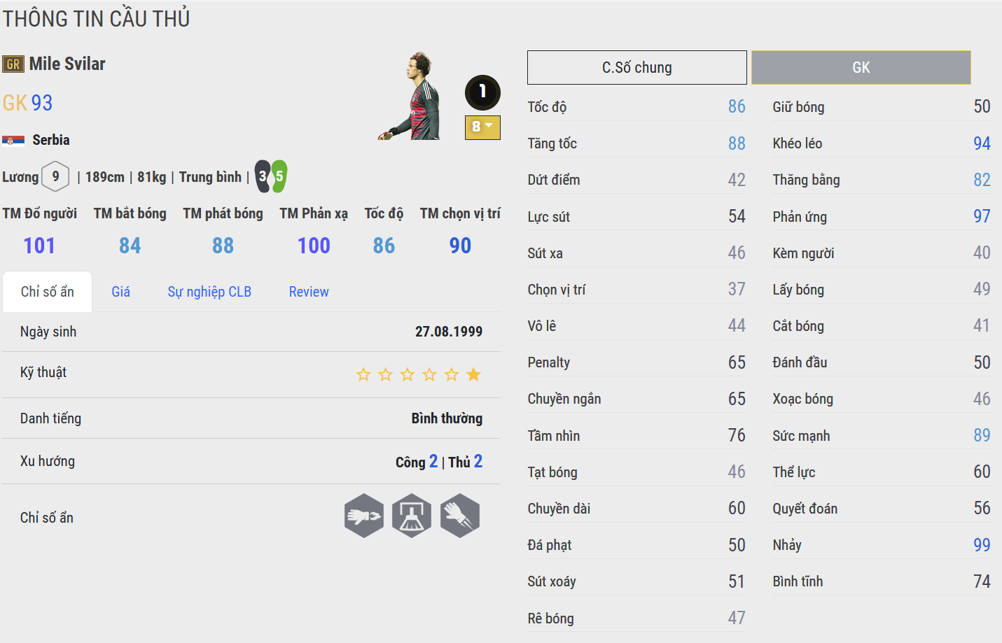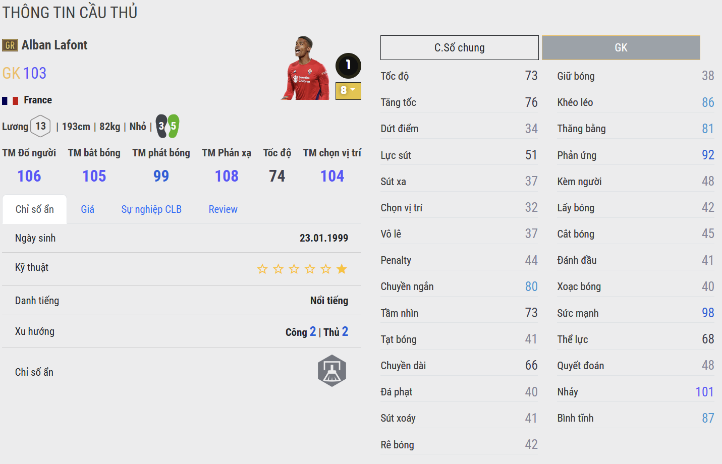 Vị trí GK được xem là vị trí cân lương mà nhiều HLV quan tâm, đây là vị trí yêu cầu sở hữu AI phản xạ thông minh cùng khả năng bắt bóng nổi bật. Vì vậy lựa chọn những cái tên vẫn giữ phong độ tốt là cực kì quan trọng.