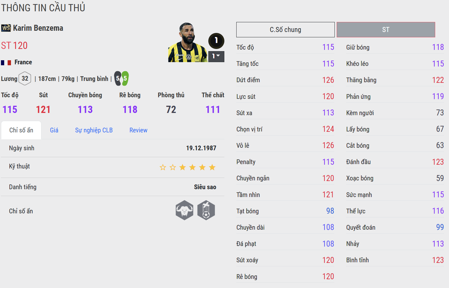 Tiền đạo người Pháp sở hữu phong cách toàn diện, kết hợp khéo léo giữa kỹ thuật, nhãn quan và bản năng săn bàn. Benzema WS mang lại sự mềm mại trong xử lý nhưng vẫn cực kỳ hiệu quả trước khung thành.