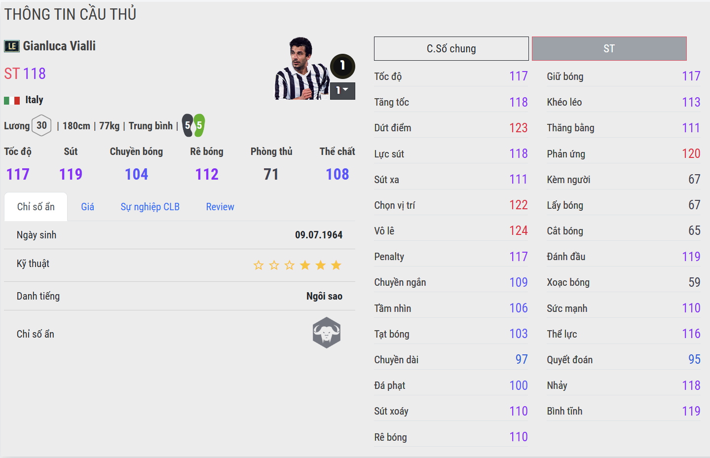 Vialli LE mang phong cách tiền đạo toàn diện: mạnh mẽ, hoạt động rộng và thi đấu rất đa năng. Anh vừa có thể làm tường, vừa xâm nhập vòng cấm đúng thời điểm để dứt điểm. Phong cách của Vialli tạo cảm giác chắc chắn, ổn định và giàu tính chiến thuật – đúng chất trung phong Chelsea thời kỳ đầu Premier League.