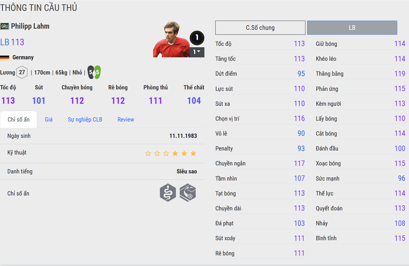 Lahm GRU là lựa chọn đặc biệt nhờ sự đa năng hiếm có. Dù không phải mẫu cầu thủ chạy cánh bùng nổ, nhưng anh lại cực kỳ thông minh trong di chuyển, giữ vị trí kỷ luật và chuyền bóng chính xác. Khả năng hỗ trợ phòng ngự của Lahm giúp anh trở thành mảnh ghép lý tưởng cho những đội hình đề cao sự an toàn và cân bằng.