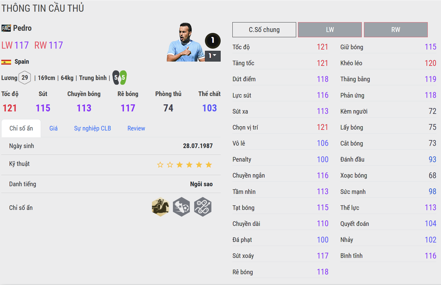 Pedro FAC là hiện thân của tốc độ và sự cơ động. Anh di chuyển linh hoạt, xoay sở trong phạm vi hẹp và biết cách mở ra các pha tấn công chớp nhoáng. Trong gameplay, Pedro luôn tạo ra cảm giác bất ngờ – từ những pha xâm nhập vòng cấm cho đến phối hợp nhanh với đồng đội, anh là mũi khoan phá khó đoán và rất hiệu quả.