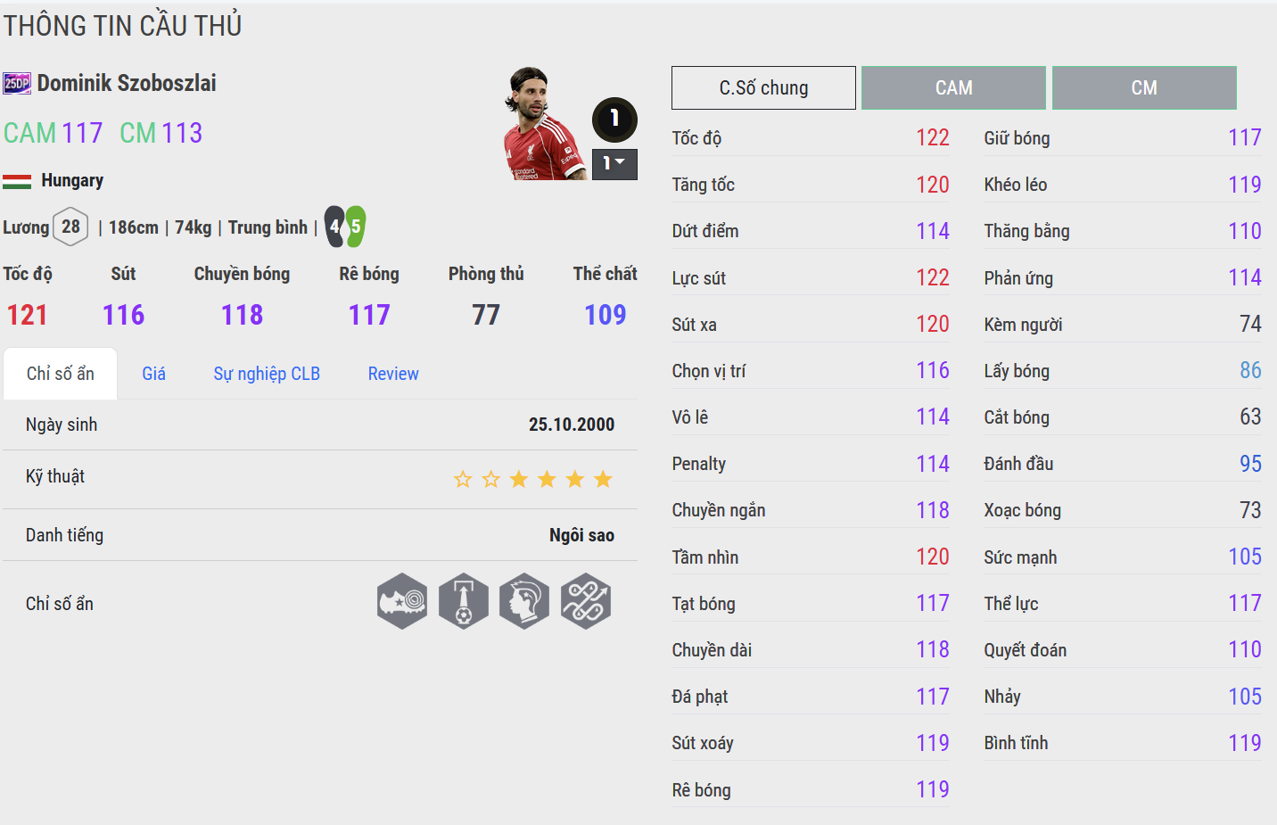 Szoboszlai 25DP là hình mẫu hoàn hảo của một tiền vệ công toàn năng. Anh kết hợp giữa nhãn quan chiến thuật, khả năng chuyền bóng chính xác và những cú sút xa mang thương hiệu riêng. Trong gameplay, Szoboszlai luôn thi đấu chủ động – biết khi nào cần giữ nhịp, khi nào cần tạo đột phá. Anh vừa là “bộ não” sáng tạo, vừa là mũi tấn công hiệu quả, mang đến sự cân bằng hiếm có cho mọi đội hình thiên về kiểm soát.