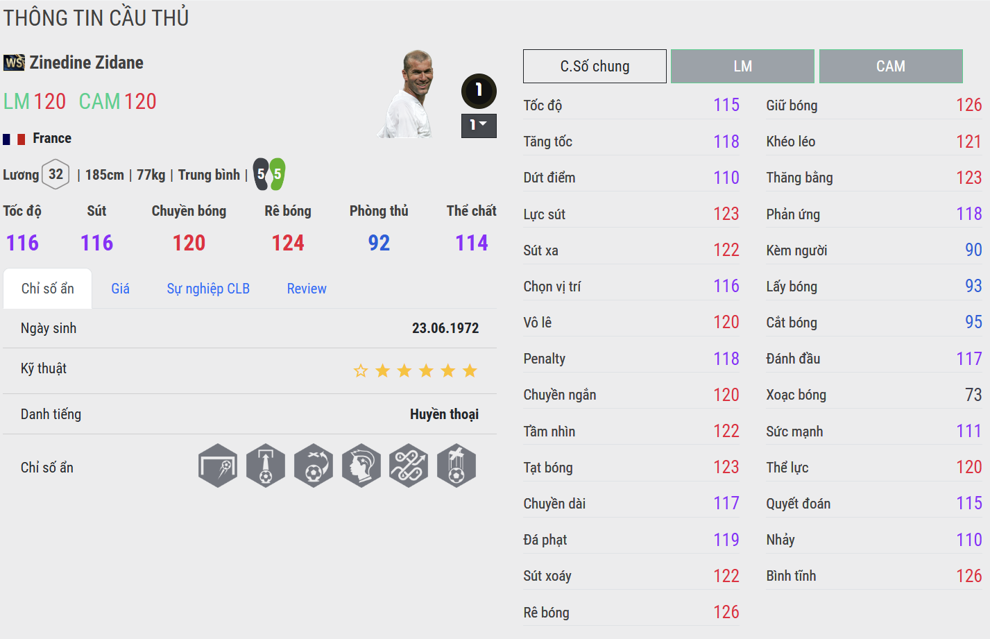 Biểu tượng bóng đá Pháp sở hữu kỹ thuật điêu luyện, khả năng điều tiết nhịp độ và những pha xoay chuyển tình huống xuất thần. Zidane WS luôn là điểm tựa chắc chắn cho lối chơi kiểm soát bóng.