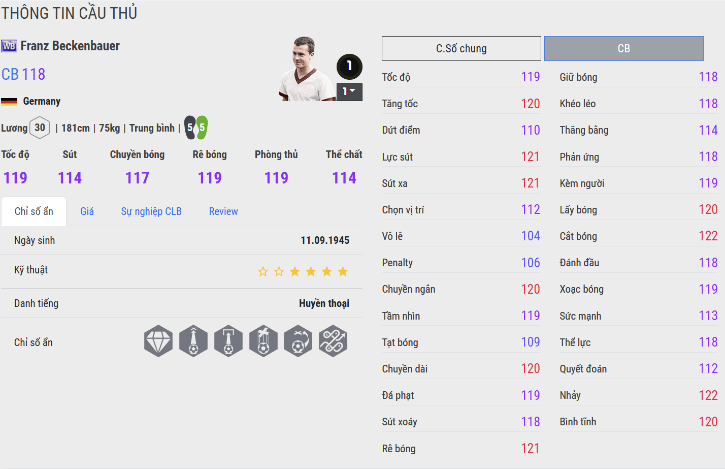 Beckenbauer WB tái hiện hình ảnh một thủ lĩnh đích thực. Anh không chỉ phòng ngự chắc chắn với khả năng đọc tình huống siêu hạng, mà còn vượt trội ở khả năng cầm bóng, triển khai tấn công từ tuyến dưới. Trong gameplay, Beckenbauer mang lại sự yên tâm tuyệt đối, vừa như một “libero” hiện đại, vừa là mắt xích chiến lược trong mọi pha bóng.