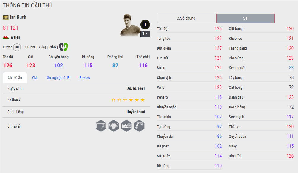 Thú thật là trước khi ra mắt mùa giải ICON THE MOMENT, Ian Rush gần như là phôi rẻ với đa phần những HLV thích ép thẻ. Mọi chuyện bỗng thay đổi chóng mặt từ khi ông được nâng cấp lên phiên bản ICON TM và từ đó nghiễm nhiên chiếm một slot trong danh sách những chân sút tốt nhất của game.