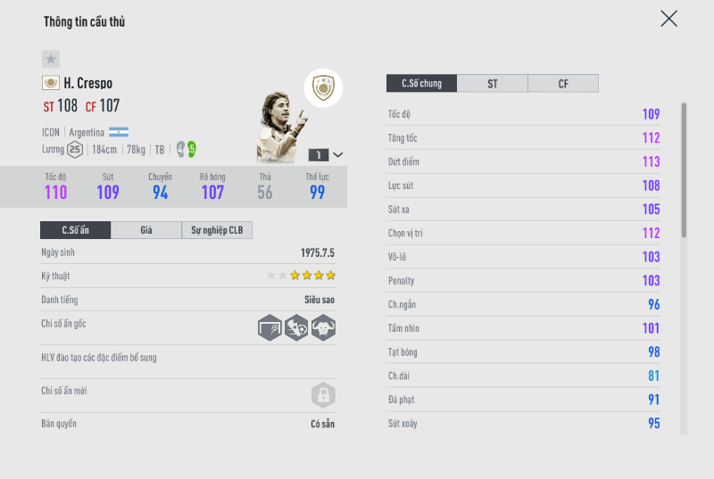 đây là ST được hưởng lợi cực nhiều của meta 7.0 khi các bạn biết Crepso là một ST toàn diện ở khâu dứt điểm, giờ đây khả năng chơi đầu sẽ được buff, và một điều cực quan trọng là khả năng kèm người hậu vệ bị hạn chế đi, điều đó sẽ là lợi thế cực lớn với tốc độ của Crespo khi cầu thủ này có điều kiện chạy trước.