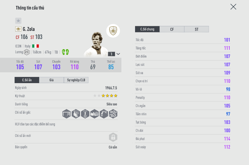 ở Việt Nam thì Zola ít được chú ý và tin dùng, nhưng tại Hàn thì huyền thoại của the Blue luôn là cái tên nằm trong top những Icon được yêu thích nhất. Và với khả năng chơi tốt cả hai chân, xâm nhập nhanh nhẹn của huyền thoại này thì không khó hiểu sao ông tiếp tục phát huy tốt nó ở gameplay 7.0