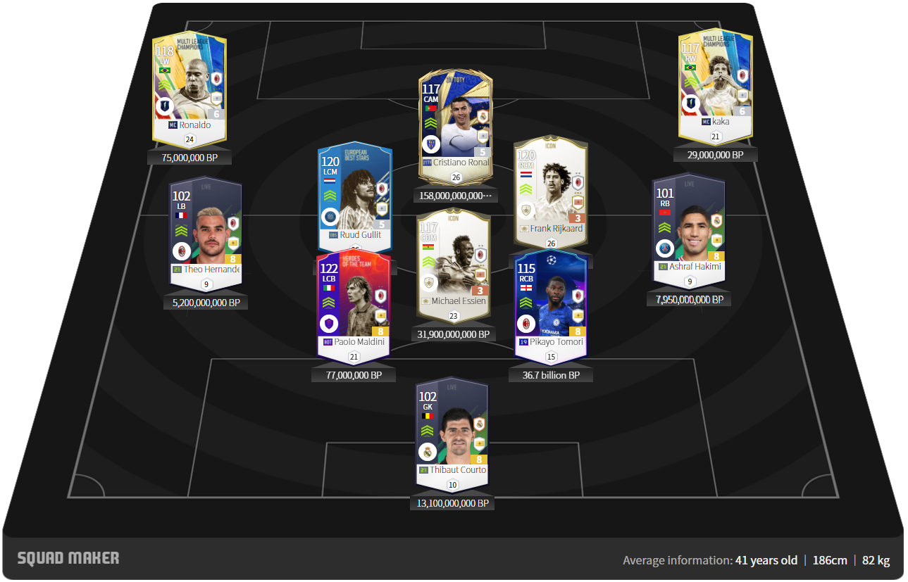 Đây là đội hình với nòng cốt là team Ac Milan. Tuy trên hình không có một ST nào được bố trí đá cắm thực thụ, nhưng chúng ta ngầm hiểu C. Ronaldo chính là chân sút chủ lực của sơ đồ này.