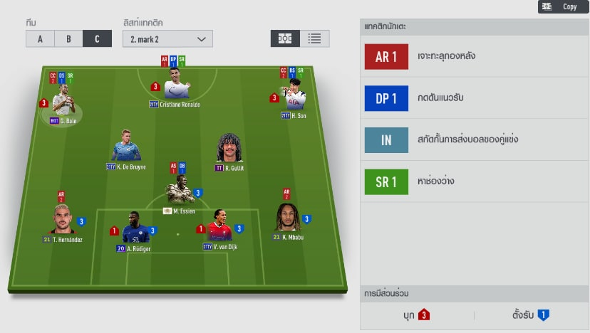 Kỹ năng lấy bóng được ưu tiên sử dụng khá nhiều ở vị trí hàng thủ.