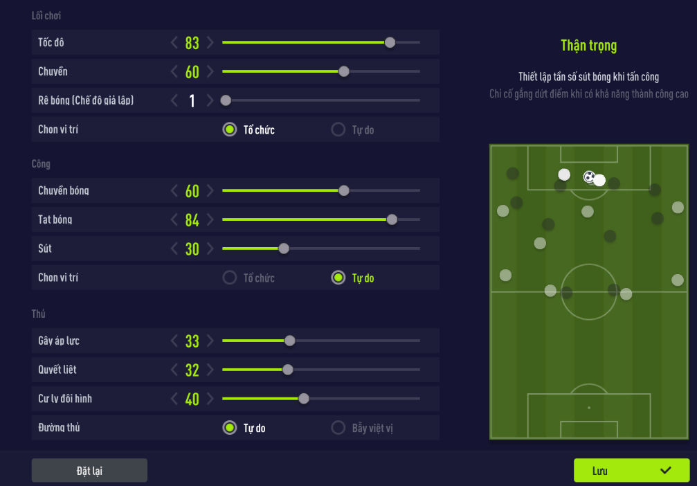 Có một chút chú ý là HLV này giữ LM RM bám cánh chứ không xâm nhập vòng cấm như thường thấy, trong khi đó thì hai hậu vệ cánh cũng không tham gia tấn công một cách chủ động.
