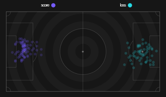 ✔ Cự ly ghi bàn hiệu quả : 14,6m