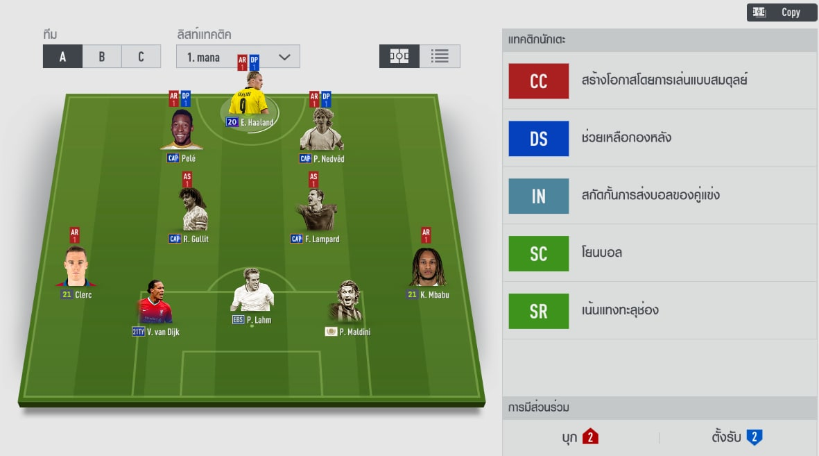 Khác với đa phần người chơi hệ 5 hậu vệ thường kéo một cầu thủ về đá SW thì HLV này để 3 trung vệ dàn hàng ngang, hai cao to và một Lalm nhỏ con ở giữa, thực tế bạn không nhất thiết phải cần 3 cầu thủ quá cao to trong hàng phòng ngự, sự cân bằng giữa sức mạnh và tốc độ vẫn là hiệu quả hơn cả.