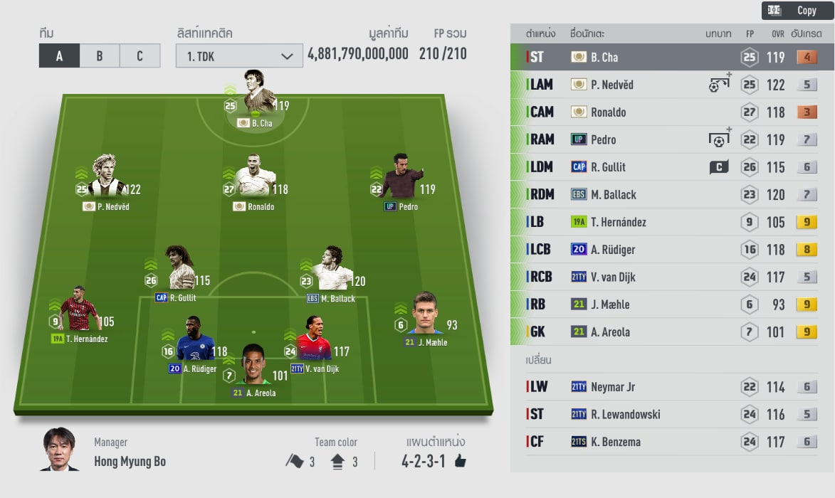 So với tại giải đấu FECC cách đây vài tháng, thì hiện tại đội hình của Keane đã có sự cập nhật vị trí của Gullit CAP, hậu vệ phải Maehle cùng huyền thoại Rô béo