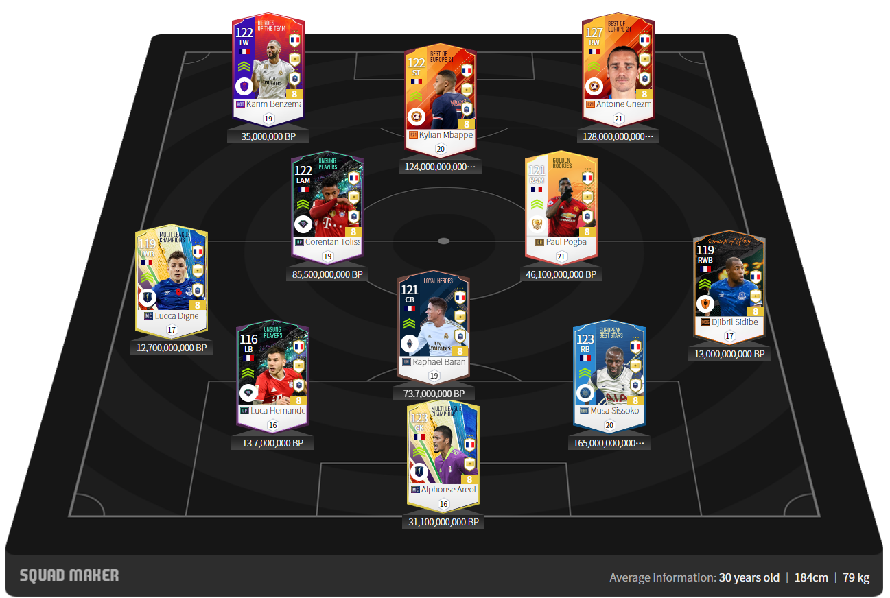 Sử dụng các cầu thủ hiện đang khoác áo đội tuyển Pháp đương đại, có thể coi đây là những nhân tố tốt nhất hiện nay của nhà đương kim vô địch WC 2018. Ngoài các cầu thủ có phần hơi lạ một chút so với máy chủ Việt Nam, thì những cái tên như Benzema Hot, Varane LH và Pogba GR, Lucas Hernandez UP đều đã được người chơi của chúng ta khẳng định chất lượng.