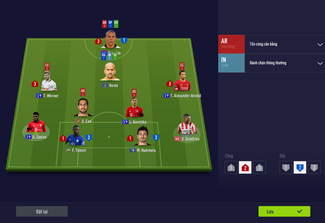 Nhìn vào đội hình này có lẽ sẽ có những bạn sẽ tự hỏi bao giờ thì mức lương trong game sẽ được gỡ bỏ để có thể được một đội hình full Milan Icon. Cái khó của đội hình chính là làm sao bạn có thể kiếm được vị trí GK và RB có mức lương rẻ mà chất lượng được như HLV này.