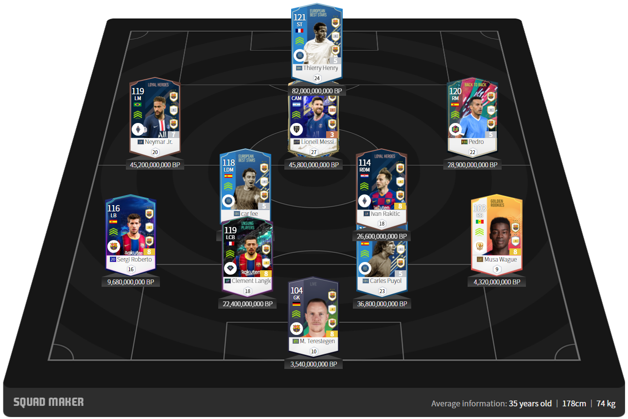 Khác với đội hình ở phần 1, lần này đa phần những cái tên xuất hiện trong đội hình đều là những cầu thủ đương đại, chỉ có 3 cái tên hiện nay đã giải nghệ là Henry, Xavi, Puyol. Chiến thuật sử dụng vẫn là 42211 với sự xuất hiện của Messi 22TY với vai trò tiền vệ tấn công. Trong khi Xavi cùng Rakitic sẽ đóng vai trò là hai tiền vệ đánh chặn điều phối. Nếu bạn cảm thấy chưa tự tin lắm về độ cứng nơi hàng tiền vệ thì có thể thay thể bằng cái tên Vidal VTR