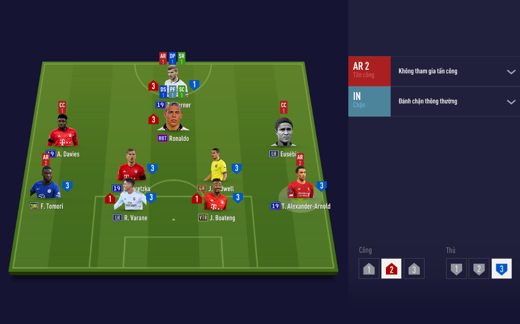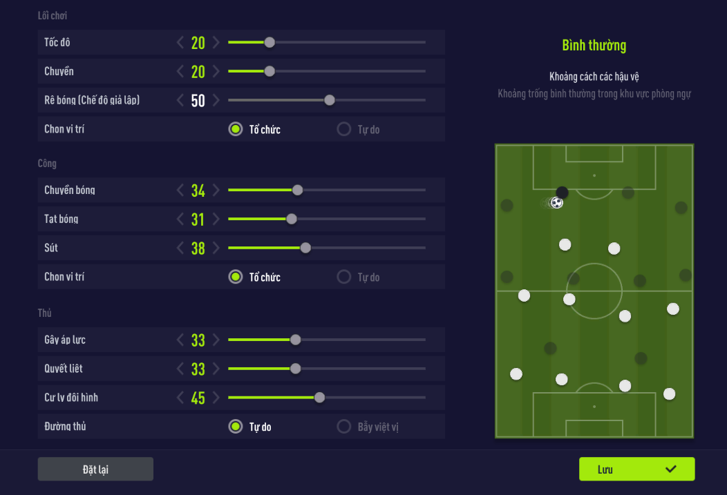 Chú ý một chút là do đội hình phòng thủ hơi mỏng nên HLV chọn phương án các cầu thủ hàng thủ và hai CDM đều có xu hướng thủ sâu 3.