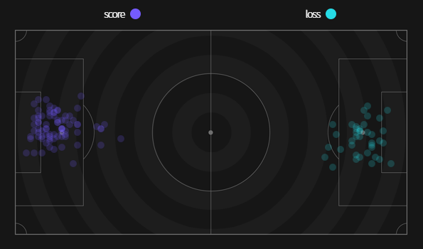 ✔ Cự ly ghi bàn : 12,9m ( khá thấp )