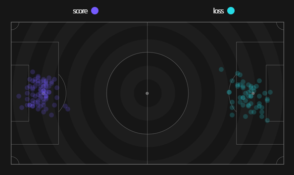 ✔ Cự ly ghi bàn : 13,5m
