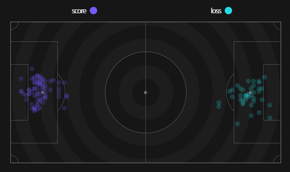 ✔ Cự ly ghi bàn trung bình : 13,4m