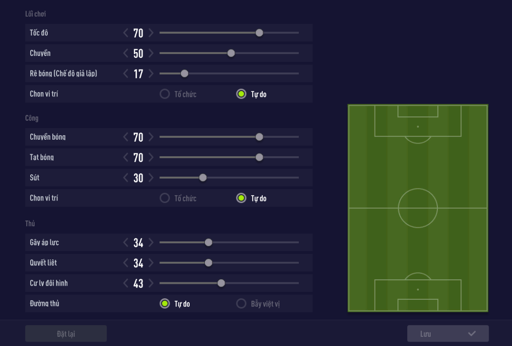 Bảng chiến thuật đơn mô phỏng của đội hình trên