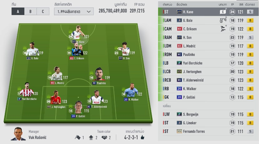 Chiến thuật 4231 được HLV người Thái này sử dụng tương đối quen thuộc với đa phần người chơi hiện nay, tuy vậy về yếu tố nhân sự ở tuyến giữa có đôi chút phân vân chính là Modric và Paulinho nếu bạn nào có khả năng phòng thủ hơi yếu. Modric là mẫu cầu thủ giữ bóng trong chân cực tốt, tuy nhiên khá nhỏ con.