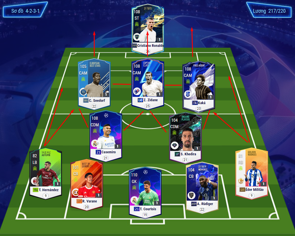 Tiền vệ tấn công : Những người quan trọng nhất trong sơ đồ, ưu tiên thể hình tốt trên 1m80, khả năng sút xa cao, và hai chân 5.5 thì càng tốt