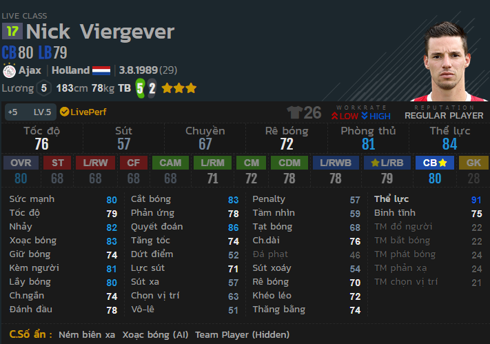Thể hình lý tưởng,tốc độ khá tốt cùng với chỉ số ẩn xoạc bóng là những yếu tố vô cùng quan trọng cho một trung vệ bọc lót. Cùng với đó xu hướng 1-3 và tầm nhìn thấp khiến Viergever duy trì vị trí rất tốt, ít dâng cao.