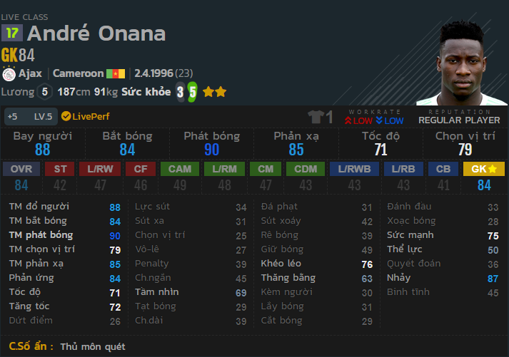 Chiều cao không quá lý tưởng nhưng cũng được coi là ổn với khả năng bay người cũng như phản xạ ở mức tốt. Đây sẽ là cầu thủ đáng tin cậy nhất trấn giữ khung thành Ajax