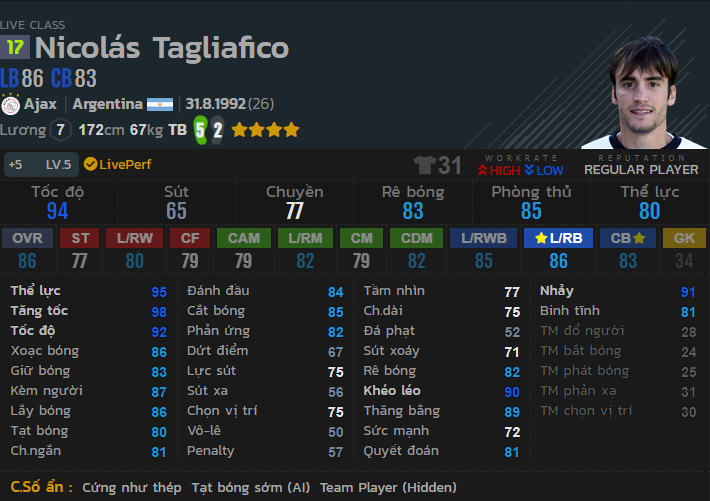 Nếu là fan ruột của LTT Become A Legend thì có lẽ bạn đã quá quen thuộc với cầu thủ này cũng như thấy được sự hiệu quả bên hành lang cánh của cầu thủ này. Tagliafico rất ít khi dâng cao, tốc độ và khả năng đeo bám khó chịu cùng với đó là khả năng chọc chân lấy bóng là rất hay.
