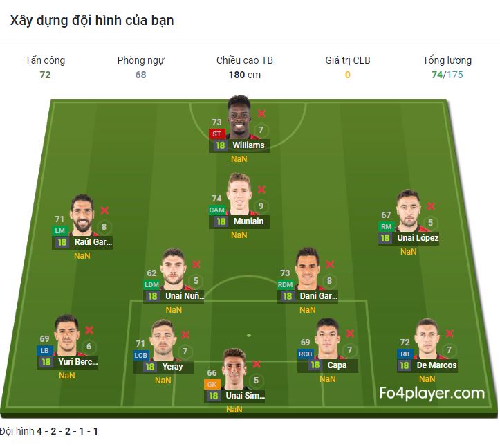 Ngược lại các cầu thủ Athletic Bilbao lại ra quân với một sơ đồ tương đối thận trọng trước những nhà đương kim vô địch La Liga
