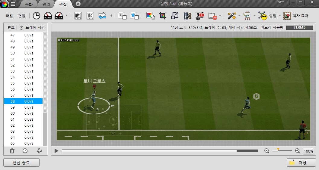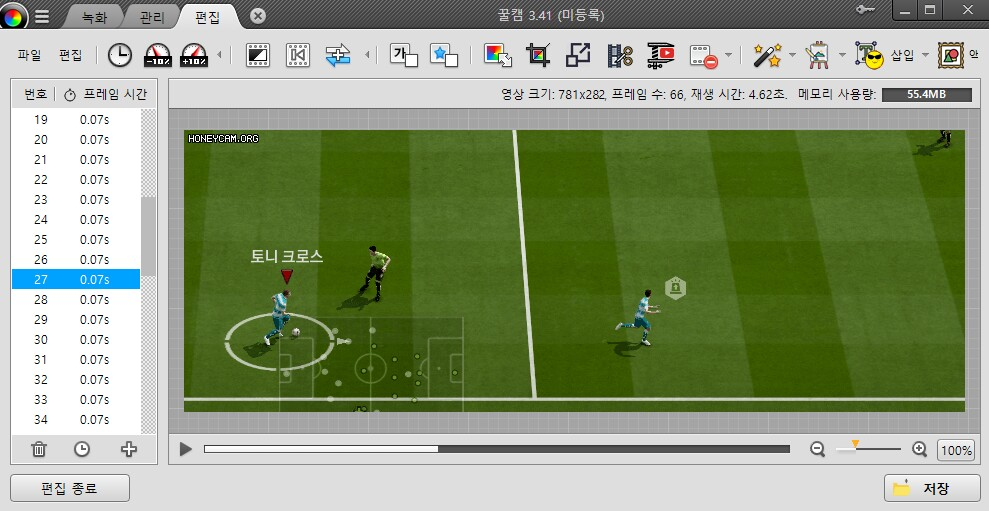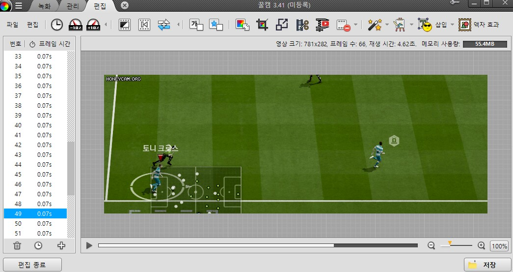 từ khung hình 35 đến 58 qua 23 khung hình mất 1,61s ( 0.07s cho mỗi khung hình )