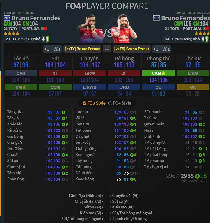 Dễ dàng nhận ra chỉ số Ovr của mùa 21TS cao hơn mùa 21TY. Đây là điều tiền lệ chưa từng có, bên cạnh đó là chỉ số ẩn củng 21TS cũng ngon hơn hẳn, khi có sự xuất hiện của thánh chuyền bóng.