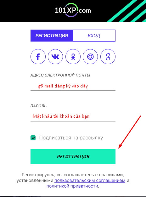 Bạn bấm vào ô màu đỏ để đăng ký tài khoản