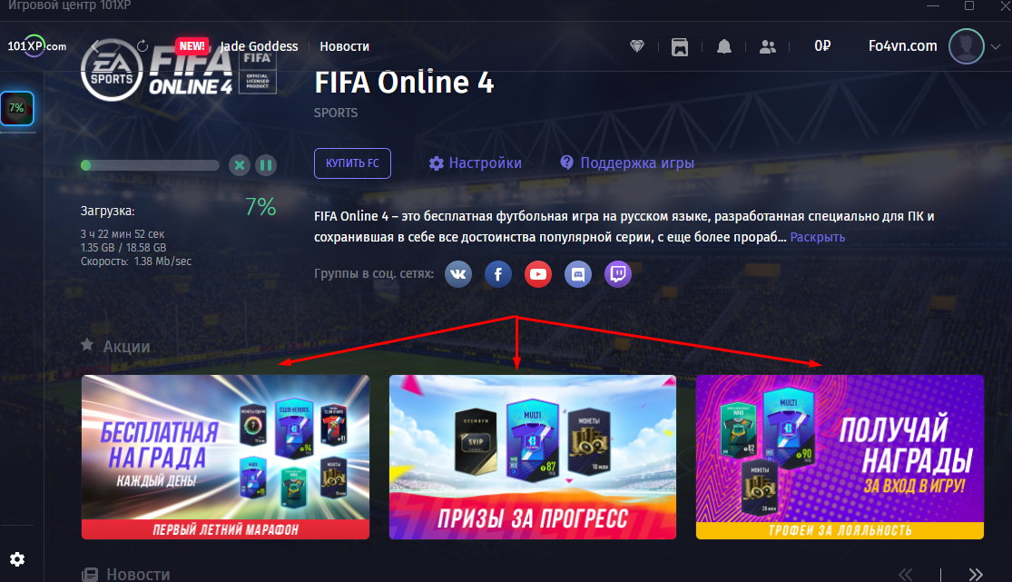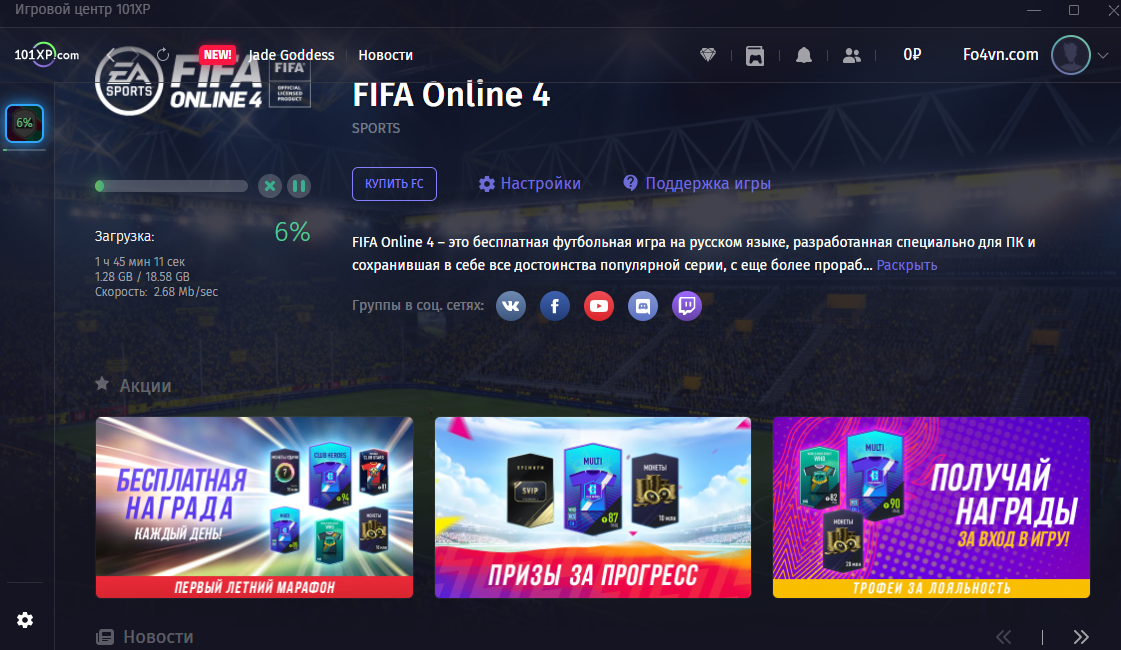 Khi xong, cửa số quản lý game của nhà phát hành 101XP sẽ hiện ra. Bạn sẽ thấy Fo4 đang được tải