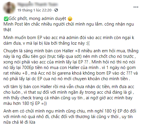 Câu chuyện dưới đây là một ví dụ được bạn chủ tút chia sẻ trên group FO4VN - Cộng đồng FIFA Online 4 Garena Việt Nam ( https://www.facebook.com/groups/fo4zone ) hi vọng sẽ là một bài học dành cho tất cả mọi người. Cẩn tắc vô áy láy
